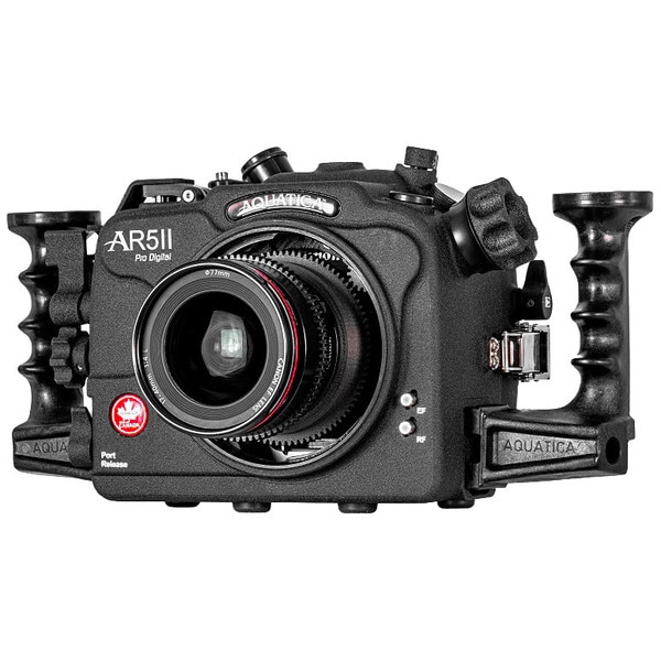 The AR5II housing supports not only the new RF mount lenses but also the EF mount by simply using Aquatica's new adaptor extension ring #48474. This new adapter can be easily installed and enables the AR5 housing to function with any previous Canon EF lens and its corresponding extension ring.