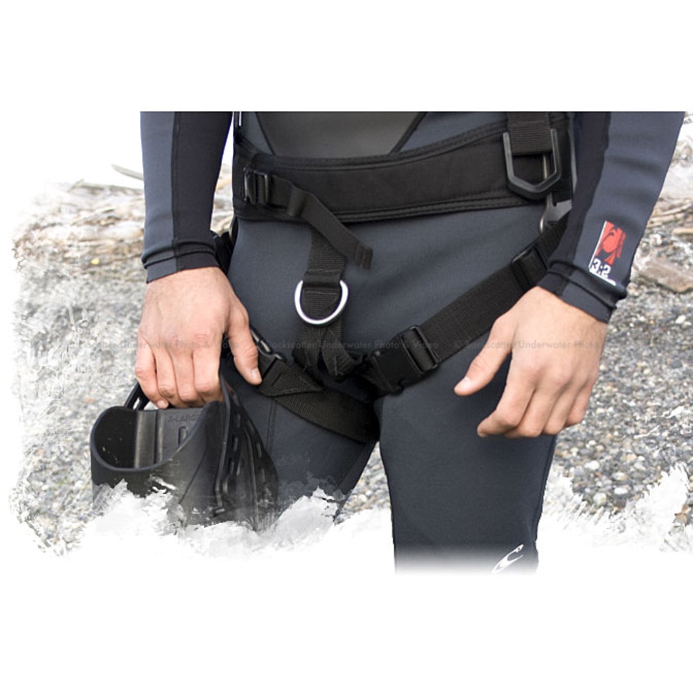 If a diver does not wear a BCD system that has a crotch strap with a scooter tow ring (such as a backplate) attached then they are required to wear this Generic Tow Harness. This will allow the X-Scooter to pull the diver by the tow harness and not the arms. The crotch strap also takes all the stress off the body when using your scooter. Will work in conjunction with any standard BCD or Weight belt.