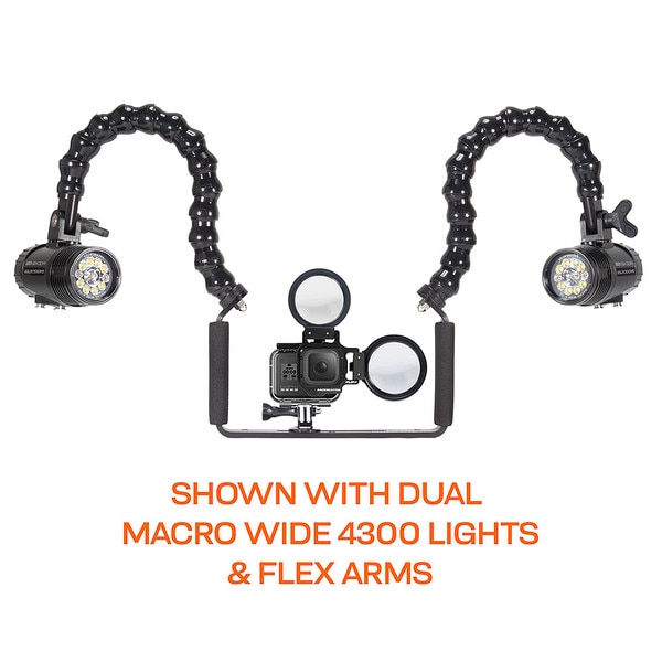 This package is the perfect advanced light set for your GoPro camera system. With a dual-handle tray, you can be sure to capture the best video a GoPro can get! This system is compatible with GoPro 5, 6, 7, 8, 9, 10, 11, 12, & 13.