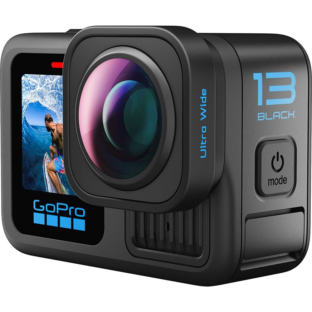 - HERO13 Black automatically recognizes the lens when attached and switches into Ultra Wide Lens mode; when removed, the camera returns to its standard setting