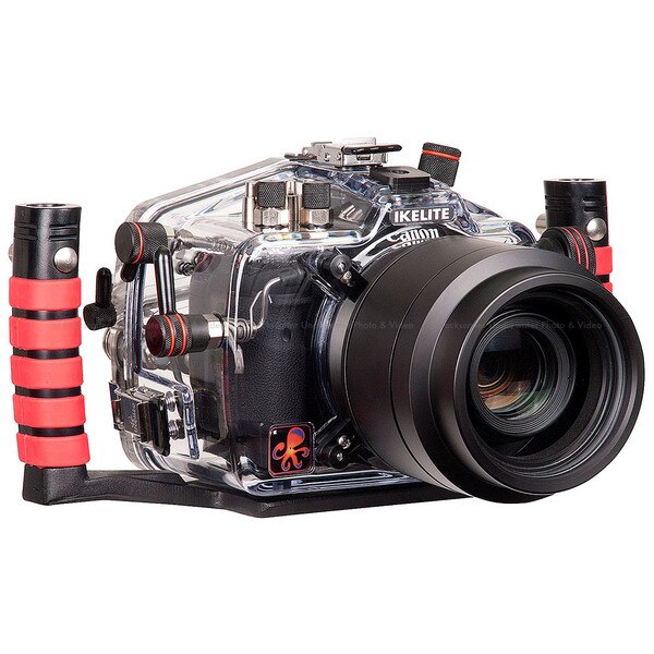 Ikelite offers a good quality, inexpensive housing for the Canon digital SLR cameras including the Canon 7D. Ikelite housings feature a depth rating of 200 feet, good control set, and built-in TTL conversion circuitry.
