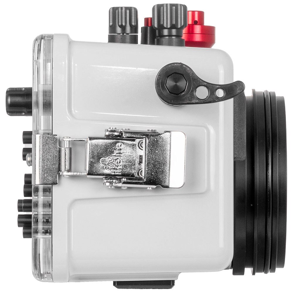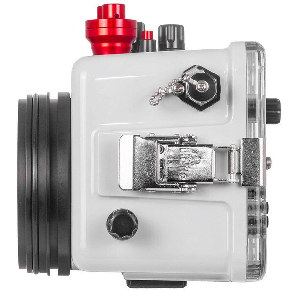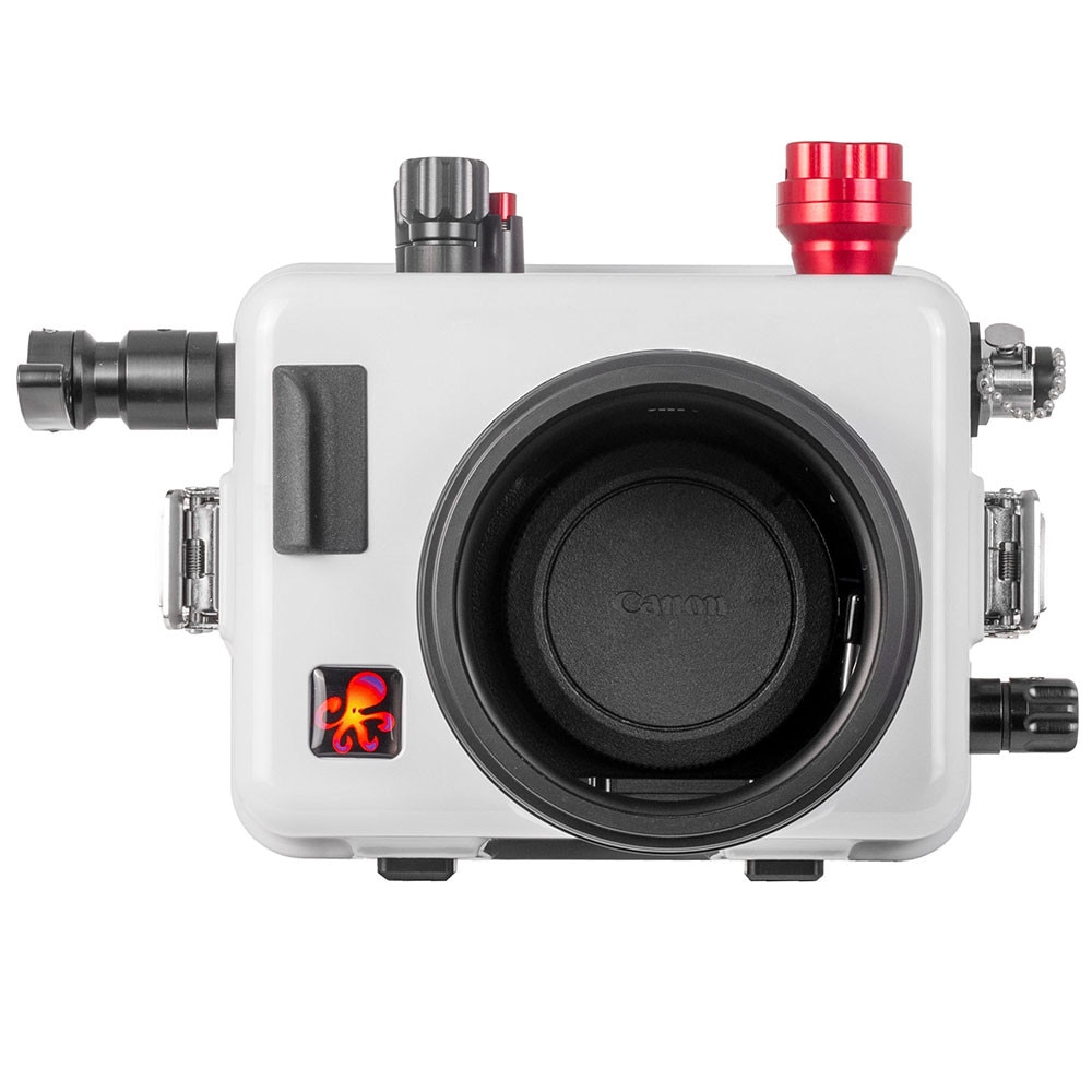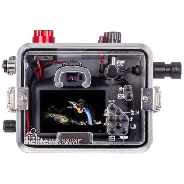 This is a full-featured and durable waterproof housing for Canon EOS R100 mirrorless digital cameras. Suitable for scuba, snorkel, surf, pool, and any application in or around the water. Ikelite's custom ABS-PC blend is lighter than aluminum yet strong enough for almost anything you want to throw at it.