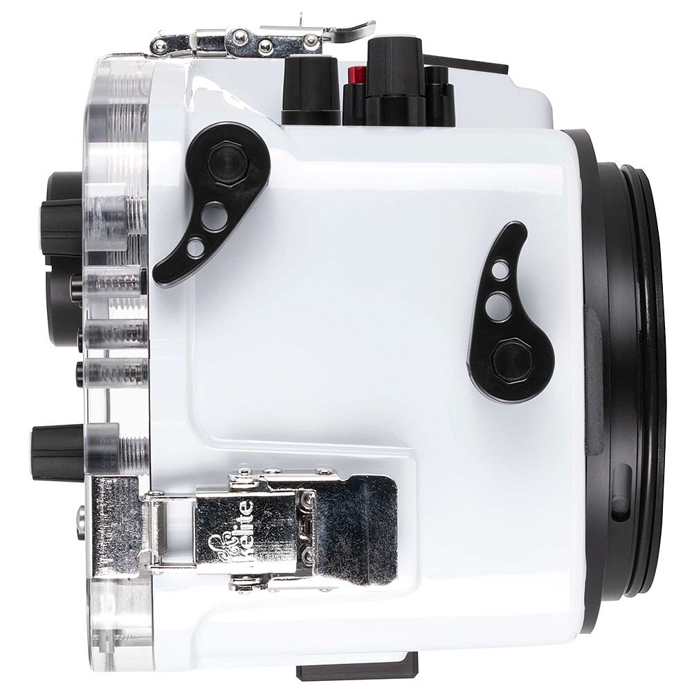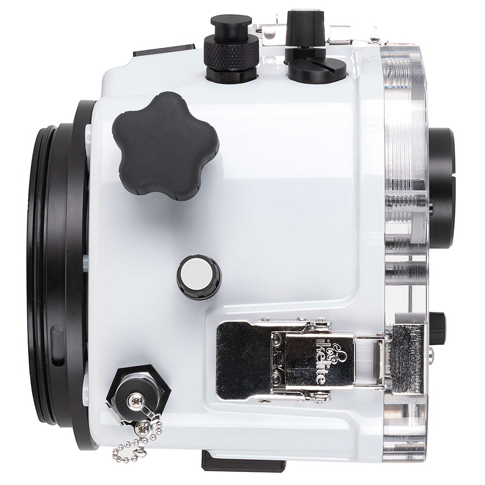 This housing features Ikelite's robust Dry Lock (DL) port system. "Dry Lock" refers to the placement of the o-ring on the outside of the port mount. This improves visibility and reduces the chances of water dropping onto your precious camera sensor. DL ports are the lightest on the market, yet robust and capable of standing up to rough surf. Attachment is quick and secure. A system of extensions can accommodate a huge variety of lenses with ease.Most popular zoom lenses and select lens focus rings can be engaged using simple gearing that puts adjustment right at your fingertips. A large, soft-touch knob on the side of the housing makes fine-tuned adjustments a breeze. Zoom and focus gears differ depending on which lens you are using. Zoom gears are sold separately.