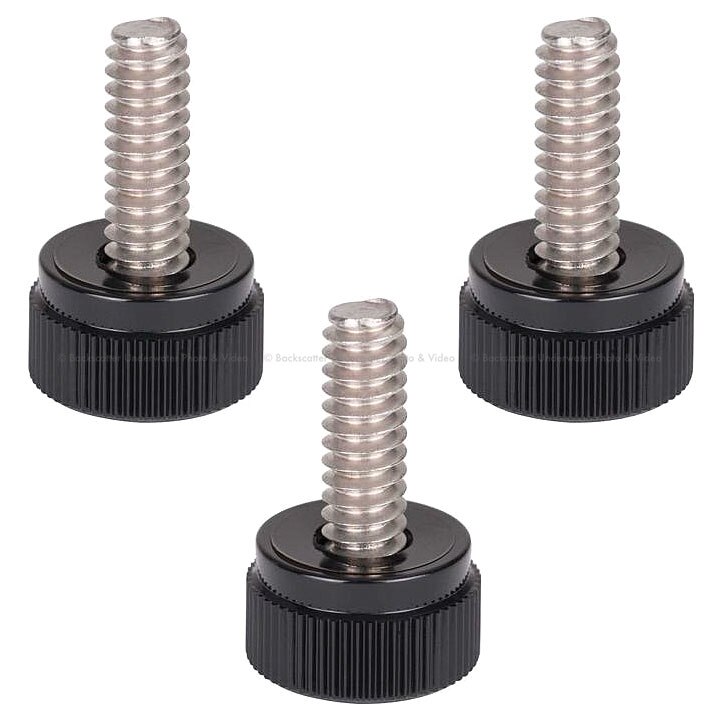 Set of three 6-32 x 13/32" thumb screws with socket drive. Compatible with all DL series lens ports.