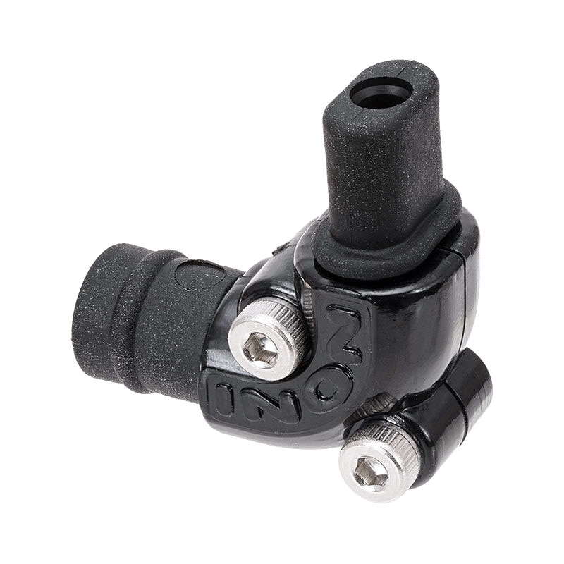 An angled rubber bush to connect a single cable to a 7 mm/0.3 in. diameter optical cable adapter of an underwater housing.