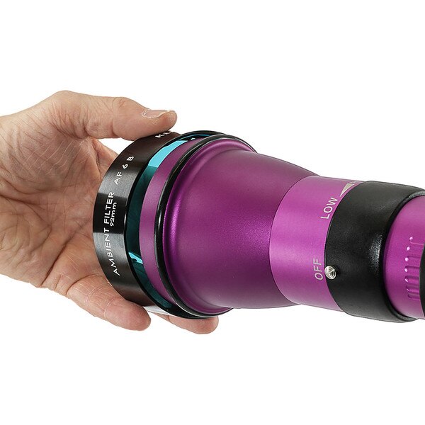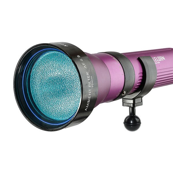 This filter is recommended for blue water within a depth range between 4-12 meters. The Ambient Filter AF 6 B converts the white video light to blue ambient light corresponding to a water depth of about 6 meters. The filter fits with the 50° Reflector for Modular Lights.