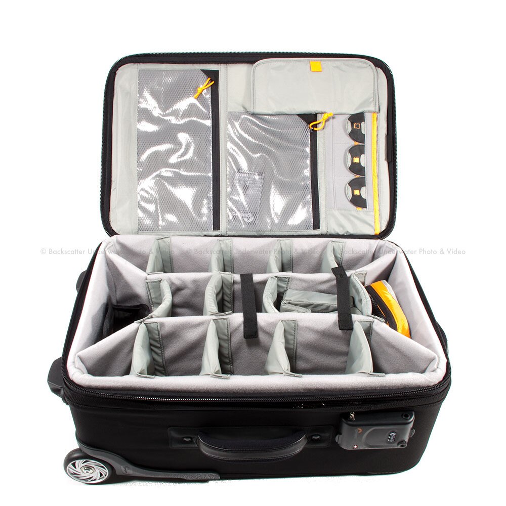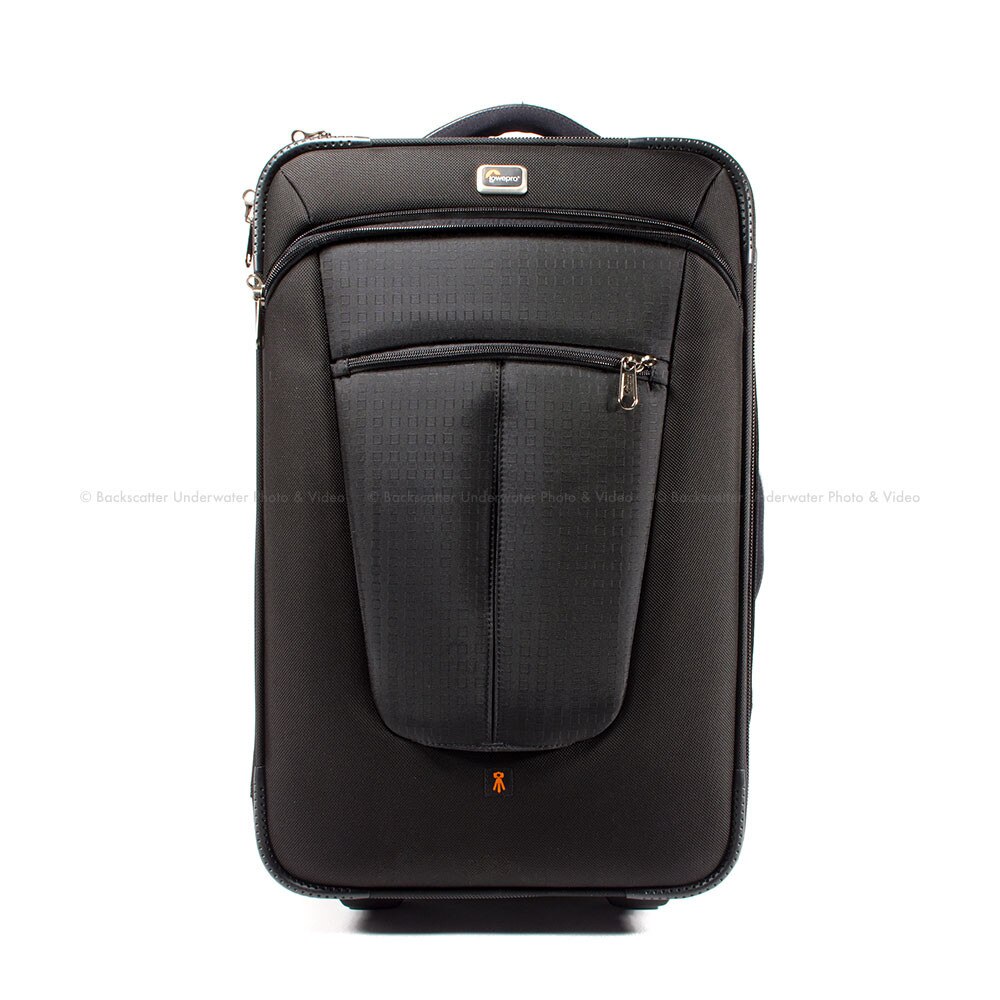 Premium wheels are removable and replaceable (with an Allen wrench) and feature Lowepro-designed housings. Additional features include: Hideaway Tripod Mount and removable tripod holder, Slip Lock attachment loops, hideaway prop foot, cord management pouch, empty/full indicator flaps on memory card pockets, ID card holder, additional space for documents and personal items, plus room for a notebook in front pocket. Airline regulations are subject to change.