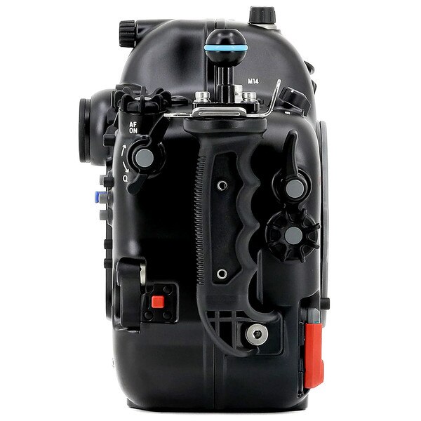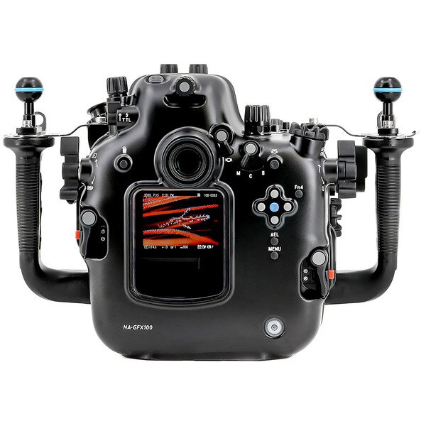 Nauticam has produced housings for a variety of both medium format and mirrorless housings. The NA-GFX100 takes all that experience and produces the most ergonomic housing available for a mirrorless digital medium format camera. Nauticam has continued to offer unencumbered access to the essential controls that underwater photographers need.The GFX 100 has 15 customizable buttons. The camera's "Q" menu can also be customized to accommodate the most-used menu items. The "Q" menu is easily accessed by the double thumb-lever on the right-hand side which also accesses the "AF-ON" button critical for back button focus. The left-hand double thumb lever accesses the "PLAY" and "DISP/BACK" functions.