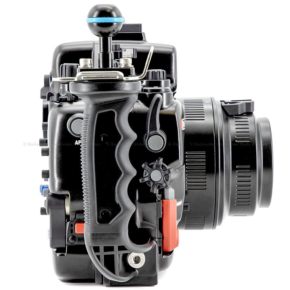 The NA-XT3 places important camera controls as close to the handles as possible to ensure effortless and quick camera setting changes underwater to insure you don't miss the shot. Thumb levers for playback and AF-L are within easy reach.ERGONOMIC RUBBERIZED GRIPS