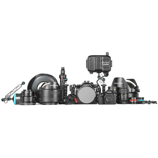 Optical performance is just as necessary as camera performance and this becomes even more critical given the challenges of filming underwater. The Nauticam NA-D780 uses the same N120 Port System like the previous Nikon DSLRs which makes for a seamless transition for those upgrading. While this system provides exceptional optical-glass and flat port solutions for a wide variety of F Mount lenses, the real power of the D780 can be realized using Nauticam's Water Contact Optics. This lineup of dry and wet lenses are conceived using commercial lens-design software to achieve truly unparalleled underwater image quality both for stills and video in both macro and wide-angle situations. The WACP-1 and WACP-2 achieve ultra-wide 130º fields-of-view with reduced distortion over conventional optics while featuring ~0" minimum focus distances, zoom through capabilities, and unbeatable corner sharpness at even wide-open apertures such as F5.6. The SMC-1 and SMC-2 macro wet-optics, when used with the Nikon 105mm f/2.8G VR macro lens provide 2x and 4x magnification respectively and the SMC-1 actually provides a resulting image with increased contrast and sharpness than the 105mm lens itself can achieve in the air without a magnifier.WHAT'S IN THE BOX: