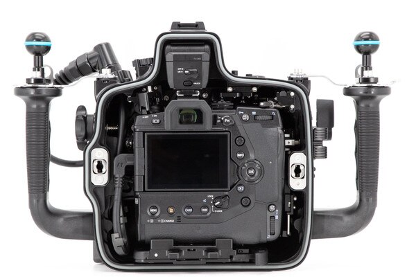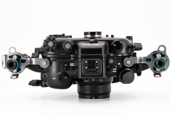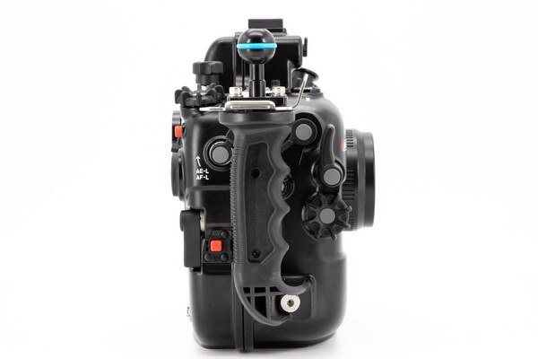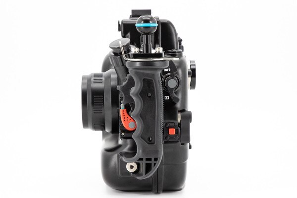 The NA-EM1X follows Nauticam's Mission Control design philosophy that brings access to the most-needed controls exactly where you need them to be, within easy reach of the DSLR-housing styled ergonomic handles.Behind the two-stage trigger is an ISO lever as well as a double lever that targets the Fn1 and Fn2 buttons on the front of the camera. A thumb lever, accessible from the right handle triggers the AE-L/AF-L button commonly used for back-button autofocus.