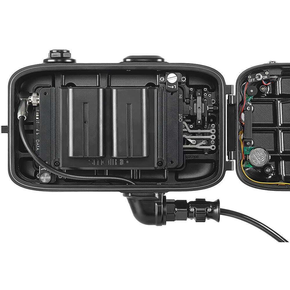 The SmallHD 503 UltraBright does require the addition of the SmallHD L-Series Battery Plate for 503/703 UltraBright. The Nauticam NA-503 housing accepts up to two Sony NP-F750 batteries which provide up to 4.5 hours of run time.