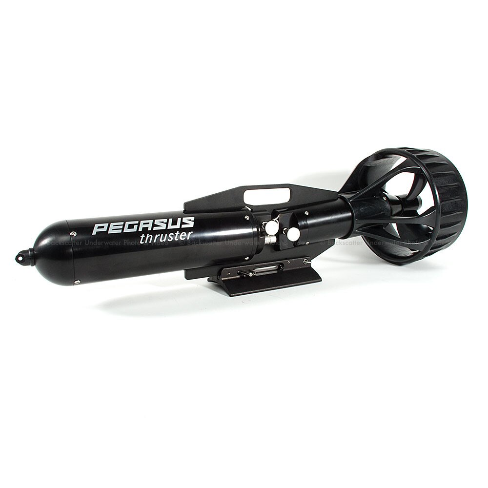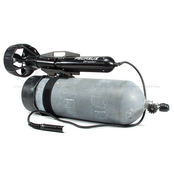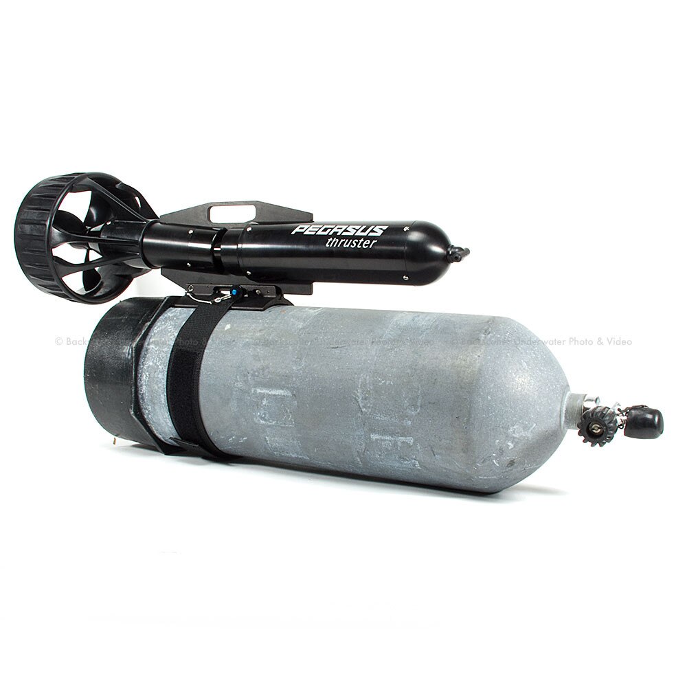 The Backscatter dive team recently tested the exciting new hands-free, tank mounted scooters from Pegasus Thruster with great results. Unlike the many scooter options on the market, our Pegasus Thruster Basic Package is airline friendly and travel ready. It's minimal 13 pounds air weight (-5 underwater) is hardly noticeable when attached to your tank for both beach and boat diving, but it delivers the speed and burntime of most technical scooters on the market.