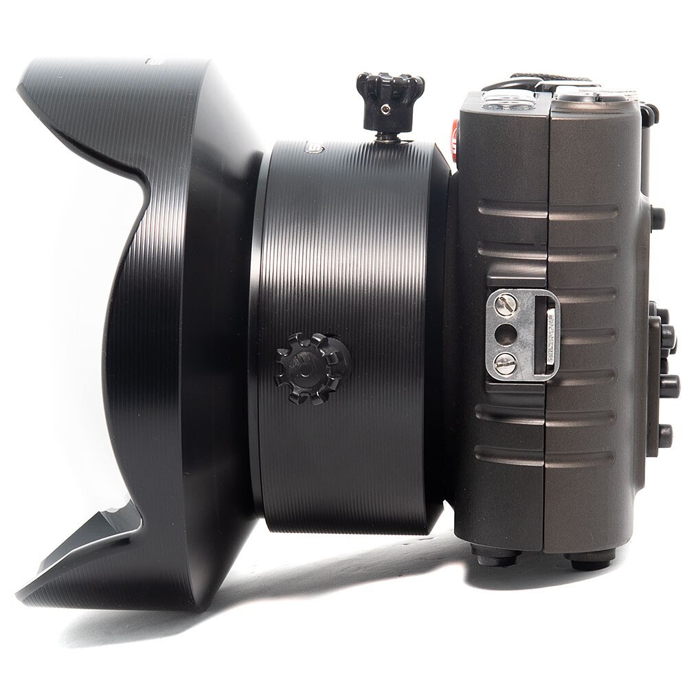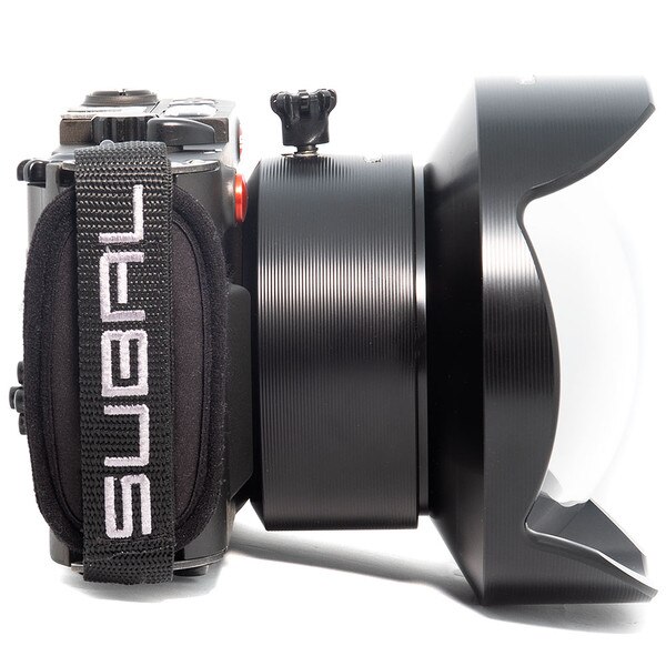 Approx. 0,55 kg (without port and accessories)Including SWB dome port (same angle of reflection underwater as outside of the water), switch for macro and aperture change (V3).