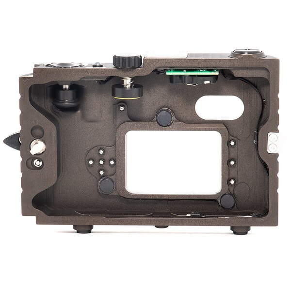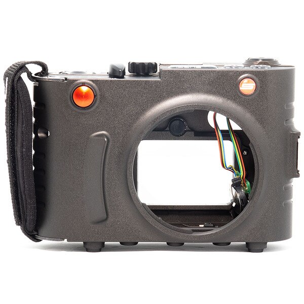 Subal's housing provides access to all the functions of the Leica Q2. The ergonomic SUBAL housing design and arrangement of all the essential controls allow easy camera operation without letting go of the grip. The camera is fitted on a special cradle which enables a precise and faster, more secure mounting. Threaded holes at the base allow the attachment of a tray. Focusing lights can be attached or mounted to the top shoe. The monitor window provides a glare-free and high-contrast view of the camera monitor. Material selection, processing, surface protection, and finish conform to the usual high-quality common to all SUBAL products.
