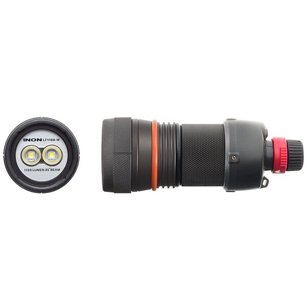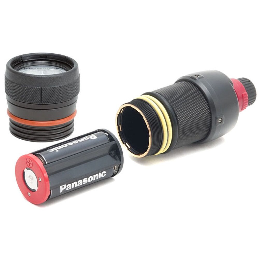 Operated by easily obtainable 3 x AA batteries. Using compatible rechargeable batteries like "Eneloop" or "Eneloop pro" enables you to share the same battery charger with an INON strobe to enhance mobility and minimize your luggage space. The rated practical burn time with "Eneloop pro" (BK-3HCC) rechargeable batteries, is approx. 50 minutes at FULL mode or approx. 235minutes (3hrs 55 min) at LOW mode.