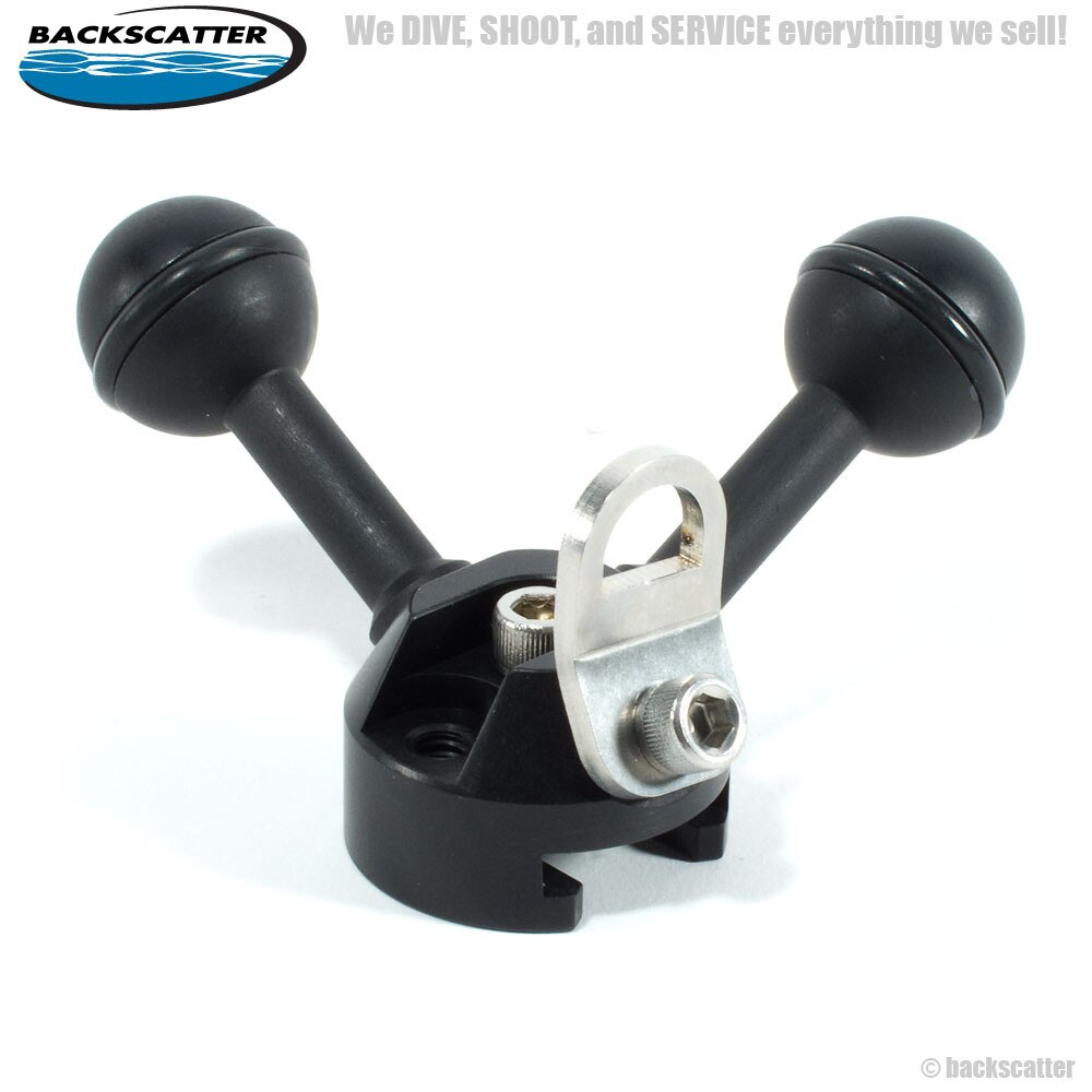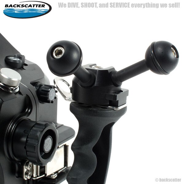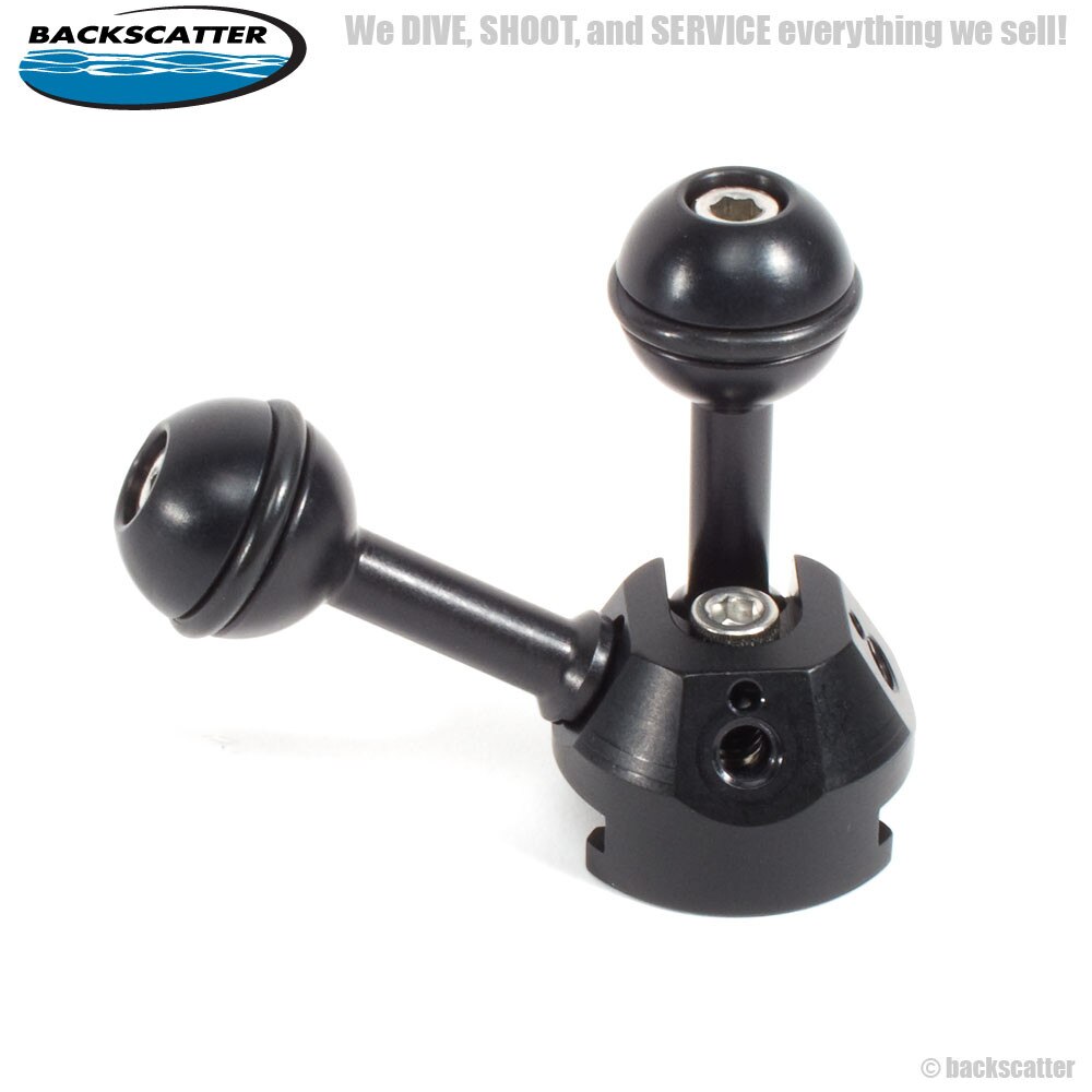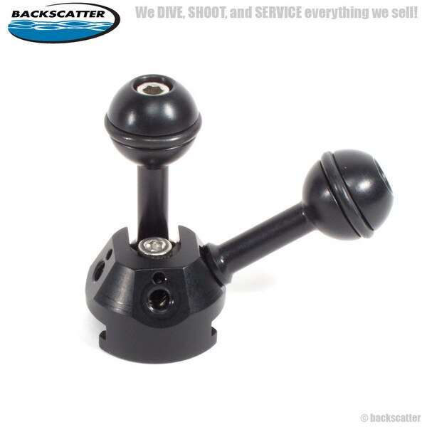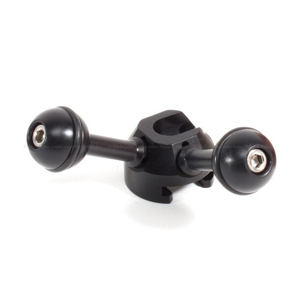 The XIT404 Quad Ball Adapter with 2 Balls is just the thing for the person using both strobes and lights. The dual balls allow the shooter to independently control 2 different arm systems from one side of a housing. No more messing with clumsy triple clamps while attempting to get THE shot.